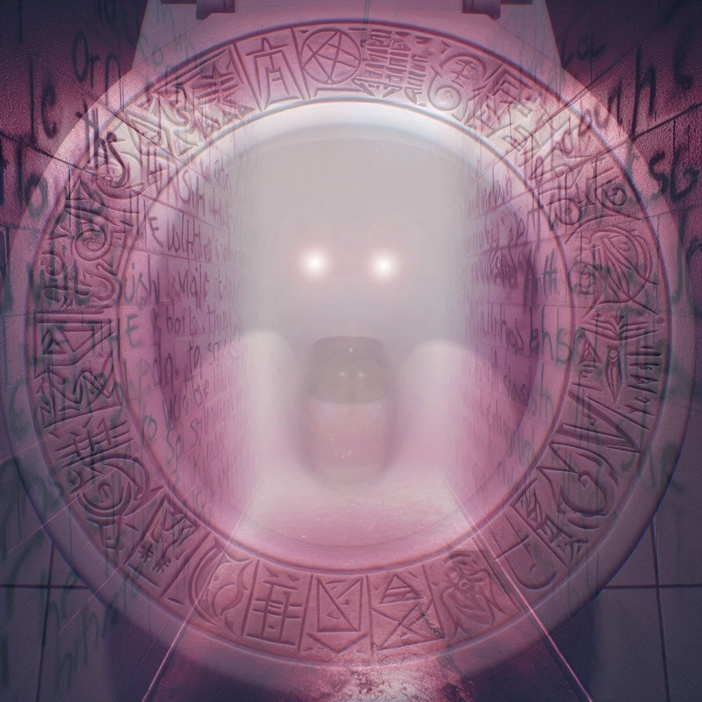 Exit is unlikely as when the door creaks open all it reveals is a narrow corridor. Mauve mist clings to the walls, the floor gives slightly, as though walking on the meniscus. The walls are line with graffiti scrawled there—half-formed sentences, nonsensical equations.